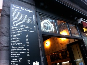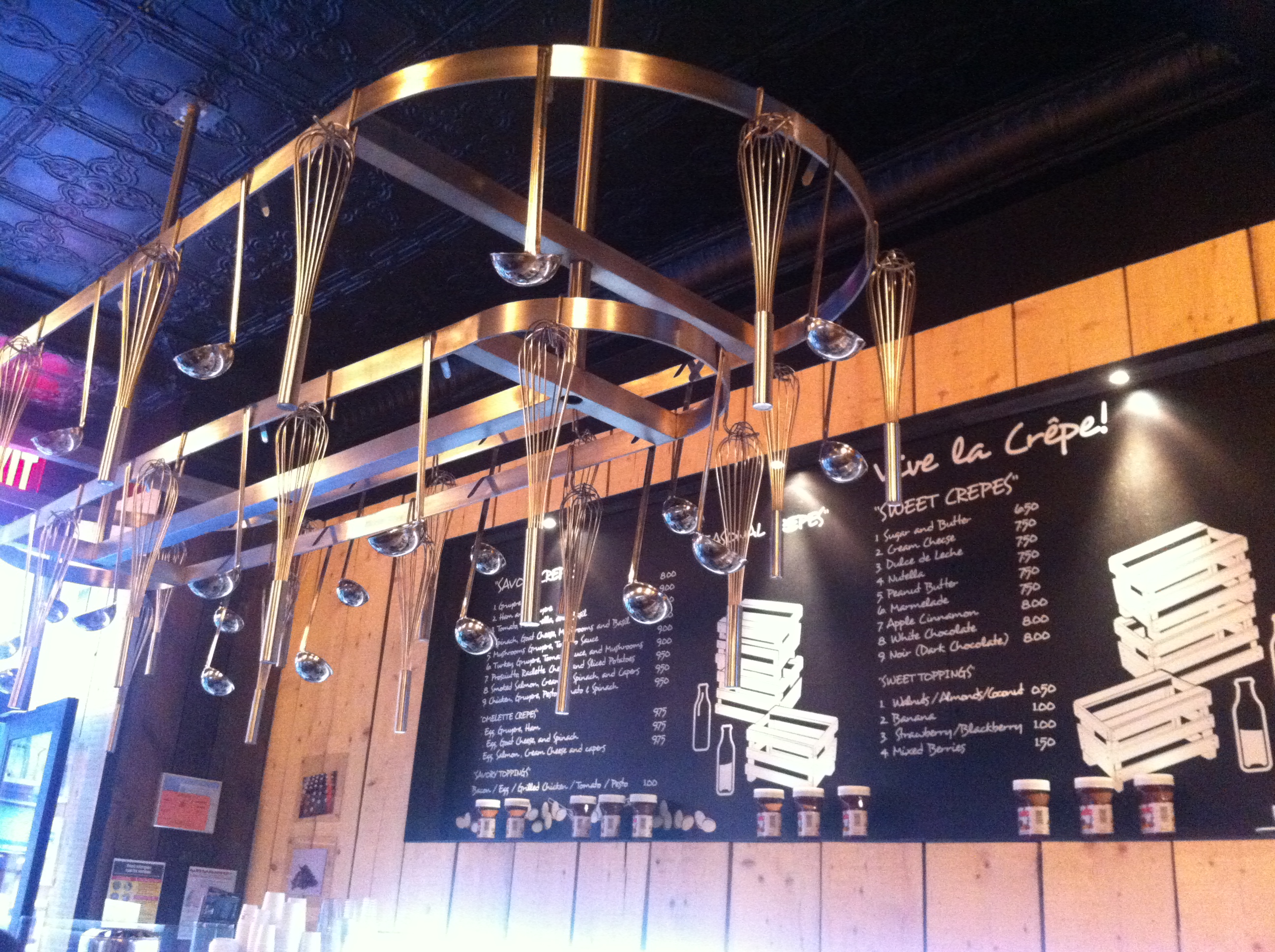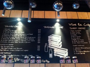 As I had just eaten, I did not indulge in a crepe, but plan to go back. I’ve attached photos that showcase the chef in action, the menu, and the decor. Seems to be a great new neighborhood place for my five blocks.