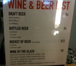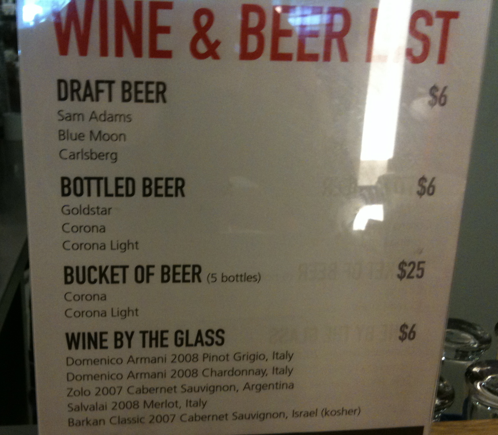 The photos above detail the wine and beer offerings at aroma.  Happy Hour is 4-7pm when you can enjoy a bucket of 5 beers for $25.    On a timely note, I was there again today and the World Cup was on both the flat screen TVs.   aroma is committed to showing the World Cup —  a hidden place to watch.   Enjoy!