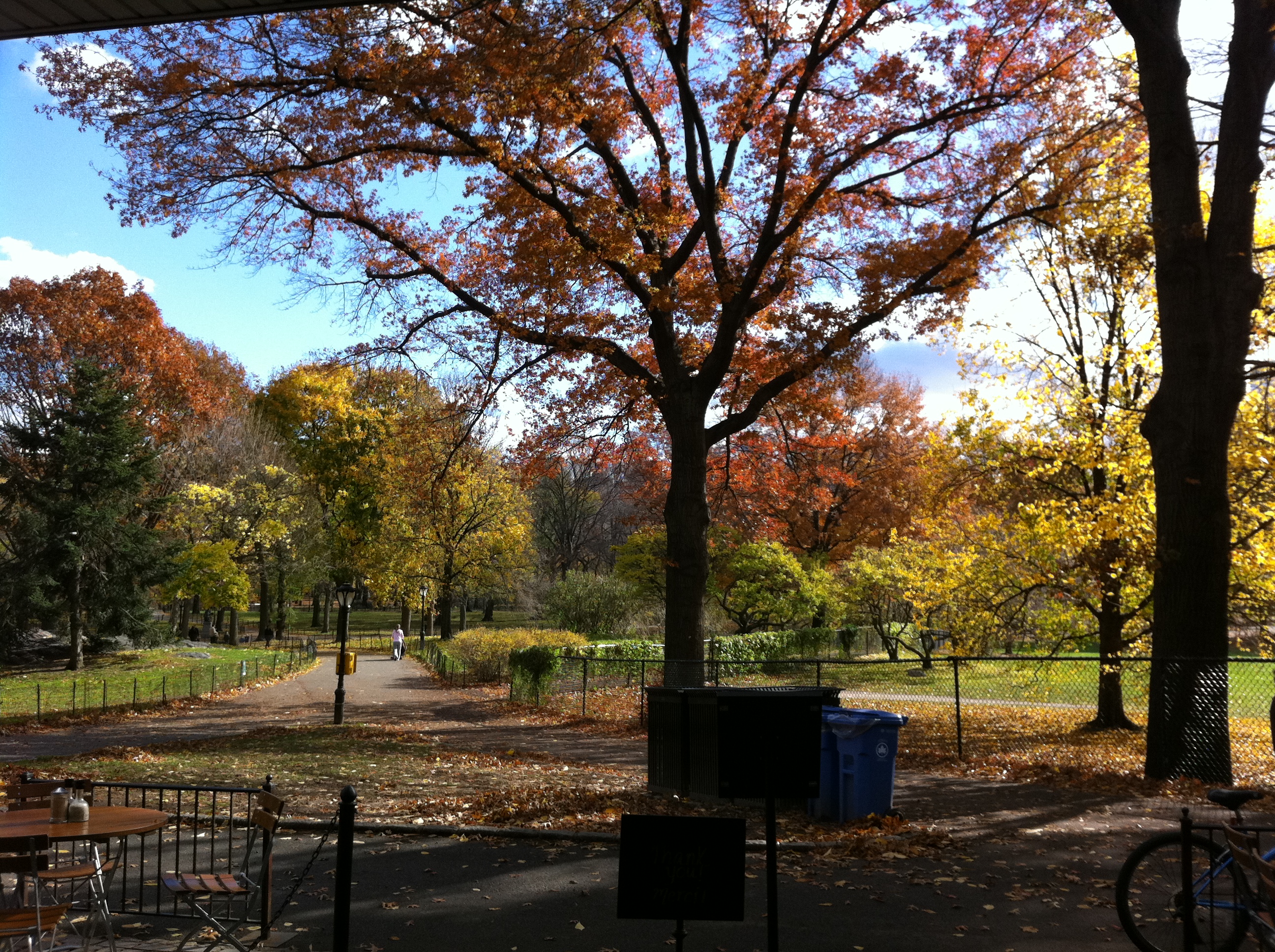 The weather may be getting colder, but Le Pain Quotidien in Central Park is still open. It is a perfect time to sit outside and watch the beauty of the leaves changing and falling in the park. The unseasonably warm temperatures right now help enhance the experience.